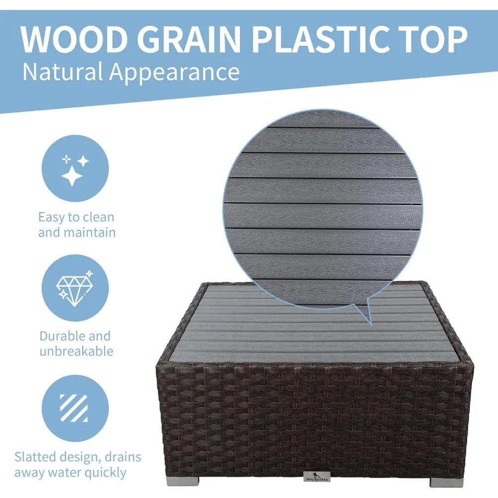 - 【Stylish Center Table】Enhance your outdoor couch set with our stylish center tea table. It has a wood grain plastic top and offers water resistance, natural beauty-the perfect size for drinks, snacks, or more.