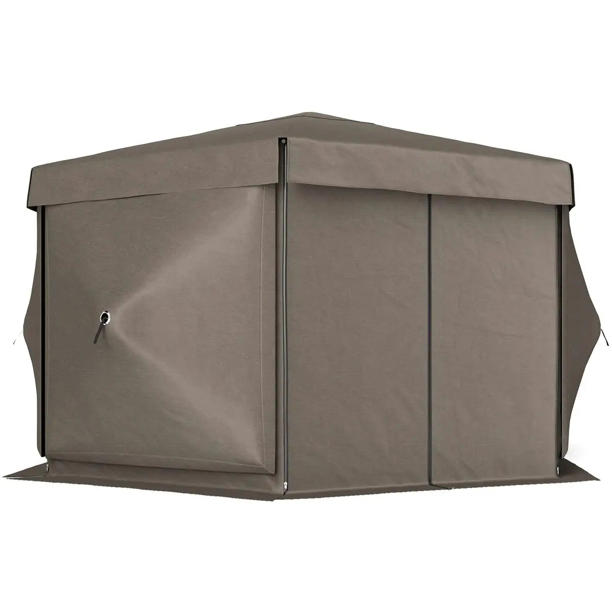 - - Removable side panels offer privacy and are attached with hook and loop fasteners